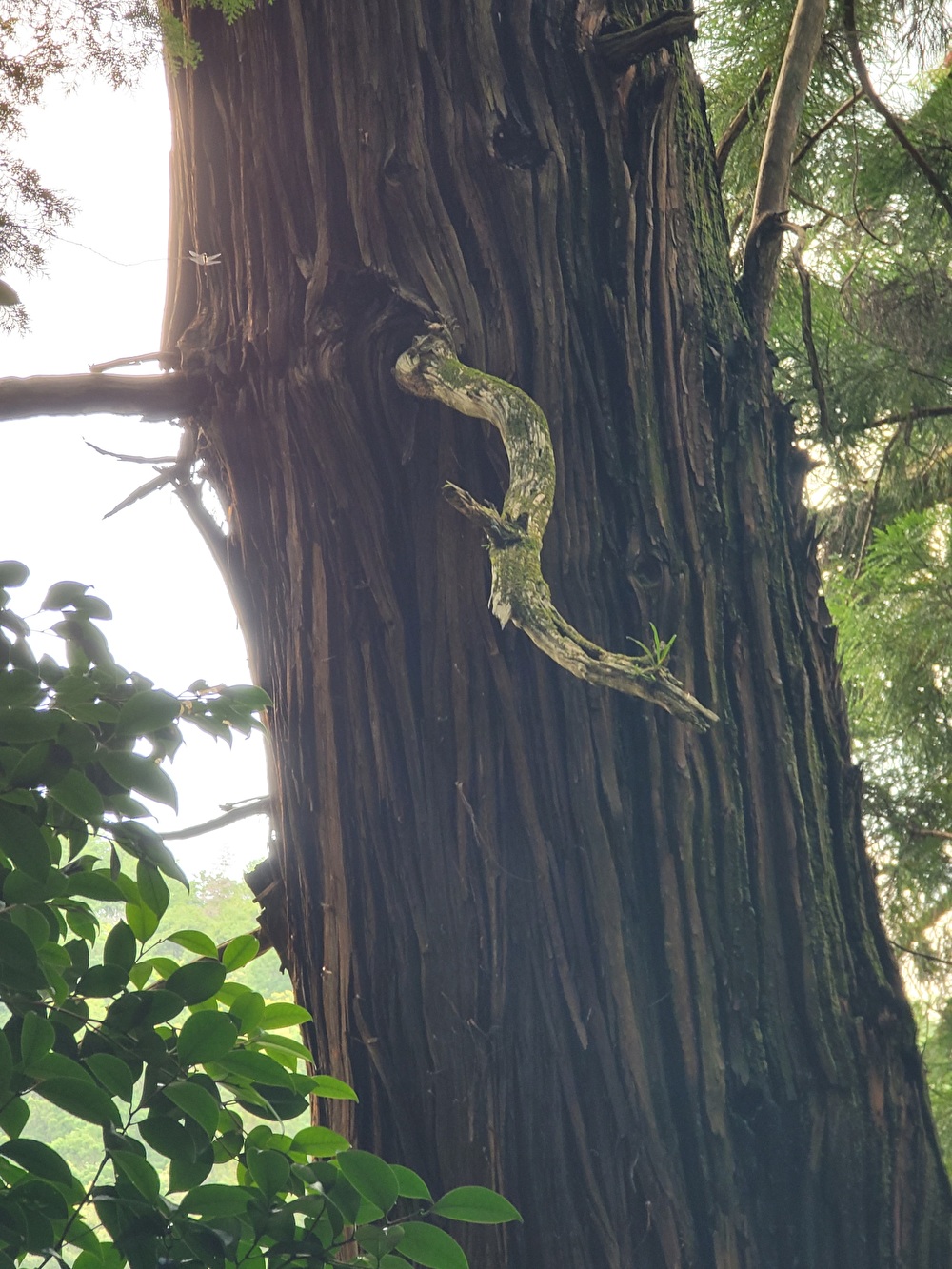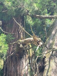 別の杉の木には白蛇に似た枝が下向きに伸びてました。